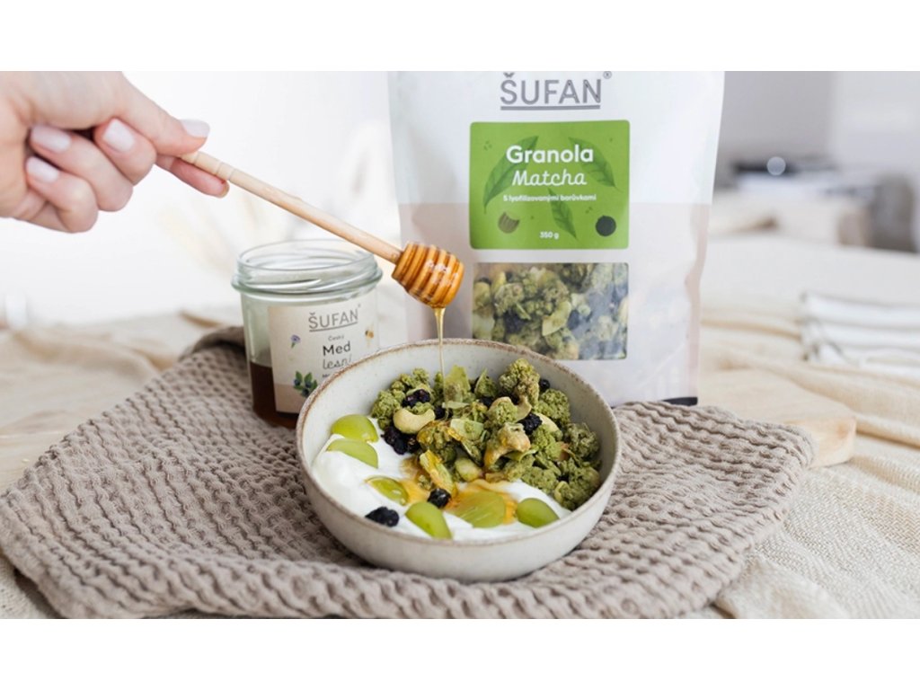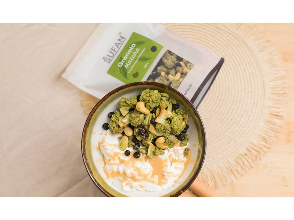 - Síla Matcha čaje: Přidali jsme výběrový zelený čaj Matcha, který dodává granole nejen unikátní barvu, ale i jemný povzbuzující účinek bez náhlých propadů energie. 🍵