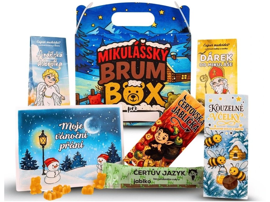 Mikuláš, anděl i čert už klepou na dveře – a s nimi přichází naše horká novinka: MIKULÁŠSKÝ BRUM BOX! Kouzelný dárkový box, který ukrývá sladké překvapení i malá dobrodružství.