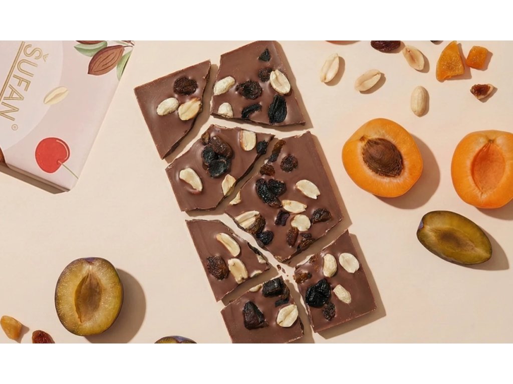 - Čisté složení: Jen kakao, mléko, třtinový cukr, ovoce a ořechy. Nic víc, nic míň.