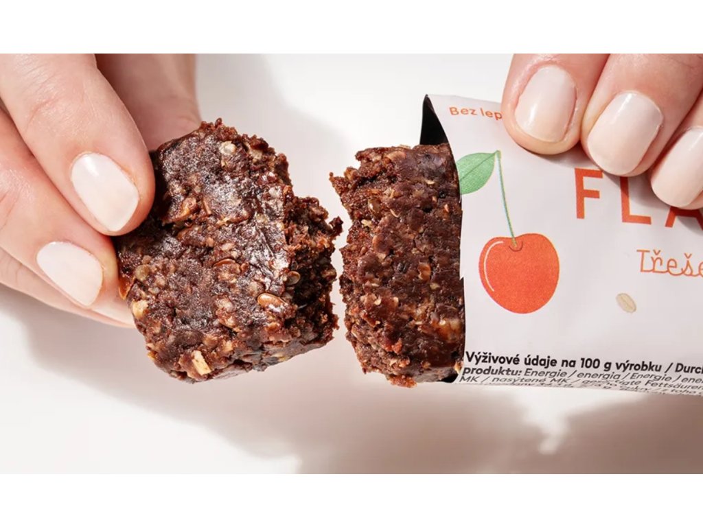 Když se spojí poctivost a chuť, vznikne flapjack, co má šmrnc. Ten náš jsme připravili s láskou ke kvalitním surovinám – základ tvoří bezlepkové ovesné vločky, mandlová pasta a máslo ghí, díky nimž je tyčinka krásně vláčná, výživná a přirozeně zasytí. O výraznou chuť se postaraly sušené třešně, lyofilizované višně a pořádná porce naší řemeslné 70% hořké čokolády. Se sladkostí jsme to nepřeháněli – sáhli jsme po čekankovém sirupu a medu, které dávají jen jemnou tečku na závěr a vlákninu navíc.
